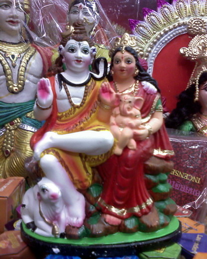 ครอบครัวพระศิวะพระอุมาเทวี และพระพิฆเนศปางเด็ก เนื้อปูนอินเดียเพ้นท์สีสูง 7 นิ้ว สวยงามมากๆ ราคาบูชาถูกมาก 880.-