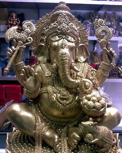 พระพิฆเนศปางสัมปทายะประทานพรประทับดอกบัว 12 นักษัตร เนื้อเรซิ่นสีทอง ขนาดสูง 20 นิ้ว สวยงามมากๆครับ ราคาเช่าบูชาถูกครับ 2,500.-