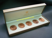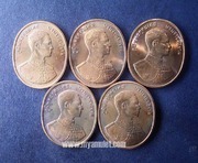 ในเซ็ตหนึ่งประกอบด้วยเหรียญเนื้อทองแดง ขนาด 2.5 X 3.1 ซ.ม. จำนวน 5 เหรียญทุกเหรียญด้านหน้าอีกฝั่งหนึ่ง เป็นพระบรมฉายาลักษณ์