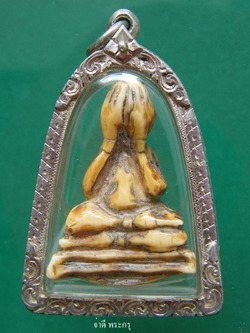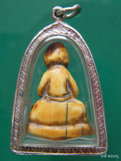 พระปิดตา งาแกะ ลพ.เดิม วัดหนองโพ เนื้อจัด จารด้านหลัง