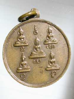 เหรียญกลมหลังพระเจ้าห้าพระองค์หลวงพ่อโบ๊ยวัดวังมะนาวทองแดงสภาพสวยเดิม