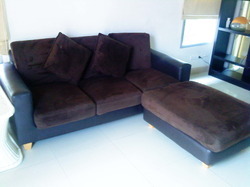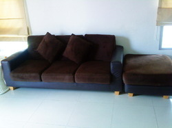 โซฟากำมะหยี่ ( สีน้ำตาลเข้ม ) ค่ะ ตัวฐาน( สีดำ ) เป็นหนังค่ะ ตัวผ้าสามารถถอดซักได้ค่ะ มีซิป เป็นงานสั่งทำค่ะ ขนาดกว้าง 1.8 M ตัวที่รางขาสามารถแยกชิ้นส่วนได้ เพิ่งซื้อมาใช้ 3 เดือนเองค่ะเพิ่งย้ายบ้านมา ไม่ได้เห้นตัวจริงก่อนผลิตพอเห็นตัวจริงมันในเล็กไปหน่อยค่ะ ต้องการซื้อใหม่ขนาดใหญ่กว่าเดิม