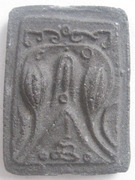 กางเขนดงพิมพ์เล็ก(กลีบมะเฟือง ) ชุดแรกเริ่มสร้างในพรรษาปี 2548 โดยถอดพิมพ์มาจากนกผอม มวลสารที่สร้างผสมดินธาตุฤษีผสมผงถ่านมะรุมป่า ผงสาลิกา ผง ว่านมงคล ผงกะลาตาเดียวและผงอาถรรพ์ ผงพิเศษ เกิดเป็นพลังแห่งเมตตาและโชคลาภ size 2.7 x 3.8 cm