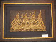 หน้าพระพุทธเจ้า มโหรีหญิง ช้างลากซุง ภาพประติมากรรมลงทอง ทำจากกระดาษหนังสือพิมพ์ ลองมาชมกันดูครับ (ลด 20% ครับ )