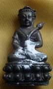 รุ่นแรกของหลวงปู่คำบุ สุดยอดพิมพ์นิยม พุทธคุณเข้มขลัง พิธีใหญ่ พระกริ่งอุปคุตรุ่นแรกเนื้อนวะก้นเงินมีจารหลวงปู่เจิมแป้ง จำนวนการสร้าง ๑๐๘ องค์ หลวงปู่จารทั้งองค์พระแล้ว พิธีพุทธาภิเษกในวันที่ ๑๘ ตุลาคม ๒๕๕๑ เป็นพิธีใหญ่ โดยมีพระร่วมพุทธาภิเษก ๑๐๐ กว่ารูป และยังมีเกจิอาจารย์ดังมาร่วมในพิธีอีกด้วย โดยมี หลวงปู่ดี วัดเทพากร , หลวงปู่แม้น วัดหน้าต่างนอก ,อาจารย์ติ๋ว วัดมณีชลขันธ์ และ ปิดท้าย ด้วยหลวงพ่อเณร เจ้าอาวาสวัดศรีสุดารมเป็นประธานในพิธี โดยตอนเช้าก่อนทำพิธีบวงสรวงโดยอาจารย์เทพนั้น เวลา ๐๖.๐๐ น. นั้น ฟ้าฝนคนองตกหนักมากจนทำให้น้ำท่วมพระอุโบสถ์ ถามผู้หลักผู้ใหญ่ที่พอจะมีความรู้เรื่องของท่านพระอุปคุตนั้น ท่านได้บอกว่าการทำพิธีเกี่ยวกับพระอุปคุตนั้นฝนต้องตก ถ้าฝนไม่ตกแปลว่าพระอุปคุตไม่รับรู้ และก็ไม่ได้ลงมาในงานพิธี เพราะท่านพระอุปคุตนั้น ชอบน้ำมาก ท่านจำพรรษาอยู่ในท้องสะดือทะเล และท่านก็มีโชคมีลาภตั้งแต่ท่านเกิดแล้วตามประวัติของท่านทำให้พ่อแม่ค้าขายดี พอออกบวชท่านยังสามารถปราบพวกหมู่มารได้อีกด้วย โดยไม่มีใครปราบได้แต่ท่านปราบได้และยังทรมานหมู่มารอีกด้วย นี้คือประวัติของท่าน แต่พอถึงกำหนดฤกษ์พิธี ฟ้าฝนกลับหยุดนิ่งไม่มีฝนแถมแดดออกอีกต่างหากครับ ทำให้คนที่มาในงานงงกันไปหมดเลยครับ อันนี้ต้องถามคนที่มาในงานดูเองนะครับ ส่วนเครื่องบวงสรวงในวันนั้นก็มีบายศรีพญานาคด้วยครับ ท่านคงเล่นน้ำครับผม เห็นเขาพูดกันครับ นี้ก็จบเรื่องของพิธีและที่มาของพระอุปคุต มวลสารที่นำมาสร้างพระอุปคุตในครั้งนี้ก็ได้จากพระเก่าต่าง ๆ ที่เป็นเนื้อเงินแผ่นจารของหลวงปู่ ตะกรุดต่าง ๆ และแผ่นจารของอาจารย์อื่นอีกมากมาย สรรพคุณ พระกริ่งอุปคุต นั้น ใช้ดีทางเดินโชคลาภ ป้องกันศรัตรู แคล้วคลาดปลอดภัย พกพาติดตัวก็ได้มีแต่โชคมีแต่ลาภประกอบกิจการได้ก็สำเร็จสมดังปรารถนาทุกประการ การบูชาไว้บนหิ่งพระก็ควรจะมีน้ำหล่อเลี้ยงท่านด้วย อาจะมีถ้วยน้ำรองไว้ข้างล่างและให้องค์ท่านลอยเหนือน้ำไว้แล้วจะดี ถ้าวันดีคืนดีท่านเล่นน้ำที่องค์ท่านก็จะเปียกน้ำทั้งองค์เลยหรือเพียงบางส่วนบนใบบัวก็ยิ่งดีครับ ปฎิหารย์มีจริง ไม่เชื่อก็ต้องลองดูครับ พระกริ่งอุปคุตสดุ้งกลับเนื้อนวะก้นเงินมีจารและเจิมแป้ง องค์นี้เบอร์ ๔๒ ครับ mail : [email protected]