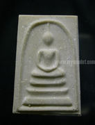องค์นี้เป็นพิมพ์ใหญ่ A ฐานจุด ตัดขอบข้างด้วยมือ สภาพสวยเดิม ดูง่าย ขนาด 2.5 X 3.7 c.m.ด้านหลังองค์พระเรียบ มีตรายางประทับไว้เป็นรูปพระเจดีย์ในวงกลม