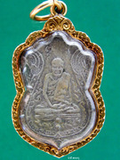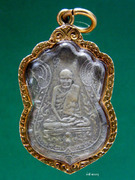 เหรียญเงิน หลวงปู่เอี่ยม วัดหนัง หลังยันต์ 4 พิมพ์ 3 จุด เก่าเก็บ ผิวพรายทอง สวยสมบูรณ์ เลี่ยมทอง ครับ