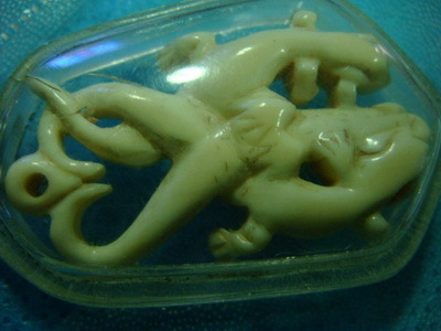 จิ้งจกงาแกะ โดยจะมีพุทธคุณทางด้านโชคลาภ และเมตตามหาเสน่ห์ จิ้งจกสามตัว