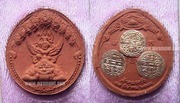 พระมีขนาด 2.8 X 3.1 c.m. เนื้อผงสีแดง หลังติดยันต์ดวงเป็นโลหะ