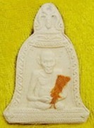พระเนื้อผง ทรงระฆัง หลวงพ่อเกษม ติดจีวร ฝังตะกรุดเงิน ปี 36 รหัส 20