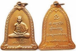 เหรียญทรงระฆัง หลวงพ่อเกษม เนื้อทองฝาบาตร ปี 36 รหัส 09