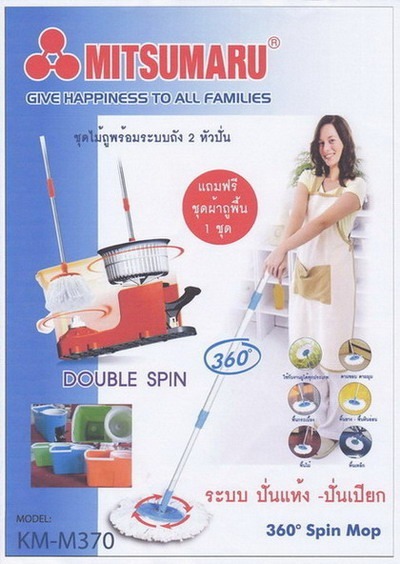 ไม้ม๊อบ 360 องศา ด้ามสแตนเลสอย่างดี ถังปั่นแบบ2หัว ซักและปั่นแห้งในถังเดียวกัน มีผ้าให้2ชุด รับประกันแตกหักทุกชิ้นส่วน 1 ปี