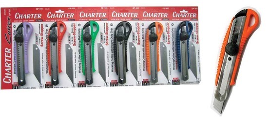 - ด้ามคัตเตอร์ทำจากสแตนเลสหุ้มพลาสติก ABS
