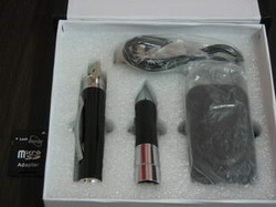 Specifications: This auction is for one Spy Camera Pen 4.0GB (Bulit-in) no drivers required Discrete Hidden Camera on top of the Spy Pen Dimension: 148mm (L) x 16mm (Diameter) Focus Range: 150mm~Infinity Frame Rate: 15fps Image capture device: 1/3 inch CMOS. Video format: Avi Video Format 352 x 288 pixels. Audio Format: 128kbps PCM Audio Color Video Recording with 0.3 - 1.3 million pixel camera Built In Microphone: Max Audio Range 10 Meters Recording time 4GB: about 8 hours. Could also be used for USB. USB 2.0 backward compatible Plug and Play Recording mode: Continuous recording until memory is full or manually off. Record both audio and video LED status indication . USB Plug&Play directly to PC/notebook. Supports: WINDOWS98/98SE/ME/2000/XP/MAS OS/ LINUX Ball point pen that actually works. Charge via USB cable or AC Adapter.