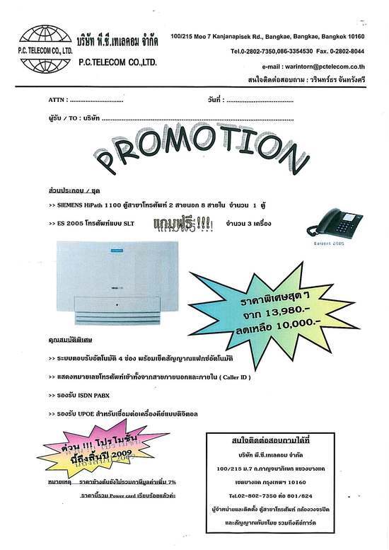 ตอนนี้มีโปรโมชั่น SIEMENS HiPath 1100 ( 2 สายนอก / 8 สายใน )