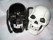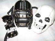 โทรศัพท์บ้านดีไซน์ รูปหัวกระโหลก ใช้งานได้เหมือนโทรศัพท์บ้านทั่วไป - เวลามีสายโทรเข้า จะมีไฟสีฟ้า ที่ดวงตา 2 ข้าง - มีสัญญาณเสียงโทรเข้า เหมือนโทรศัพท์บ้านทั่วไป - มีสีให้เลือก 2 สี สีขาว กับ สีดำโครเมี่ยม