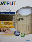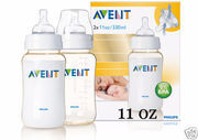 ขวดนม ขนาด 11 oz. รุ่น BPA-free ให้คุณสบายใจกับการใช้ขวดนม เพราะเป็นพลาสติกรุ่นปลอดสารก่อมะเร็ง ขวดนม AVENT จะมีลักษณะเฉพาะ คือ ปากขวดกว้าง ง่ายต่อการบรรจุนมและทำความสะอาด พร้อมขีดบอกระดับเที่ยงตรง ง่ายต่อการอ่าน โดมฝาขวดปิดสนิทกับจุกนม ป้องกันการรั่วซึมและเขย่าระหว่างการเดินทาง อีกทั้ง จุกนมเป็นรุ่น Air-Flex สามารถป้องกันลมที่อาจเข้าไปในท้องขณะที่ลูกน้อยดูด เพื่อหลีกเลี่ยงอาการโคลิกได้เป็นอย่างดี