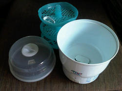 สามารถนึ่งขวดนมได้ครั้งละ 6 ขวด มีชั้นรอง 3 ชั้น สำหรับวางขวด จุก และฝาครอบ ลักษณะการใช้คล้ายหม้อหุ่งข้าวคือเสียบปลั๊กและกดปุ่ม เครื่องทำงานประมาณ 8 นาที สามารถล้างทำความสะอาดได้ง่าย ชั้นวางขวดนมด้านในถูกออกแบบมาเป็นพิเศษเพื่อรองรับเครื่องปั๊มน้ำนมไอซิส และอุปกรณ์เสริมต่างๆ-สามารถประกอบเข้าด้วยกันเพื่อใช้เป็นตะกร้าวางขวดสำหรับคุณแม่ที่ประสงค์จะล้างของชิ้นเล็กก่อนทำการฆ่าเชื้อ-เพียงแค่เติมน้ำ 90 มล. แล้วเปิดเครื่องความร้อนอย่างยิ่งยวดจากไอน้ำนี้จะฆ่าจุลลินทรีย์ชนิดที่อาศัยอยู่ตามบ้านภายในเวลาอันรวดเร็วและถ้ายังไม่เปิดฝาก็ยังสามารถคงสภาพการปลอดเชื้อได้ 24 ชม.