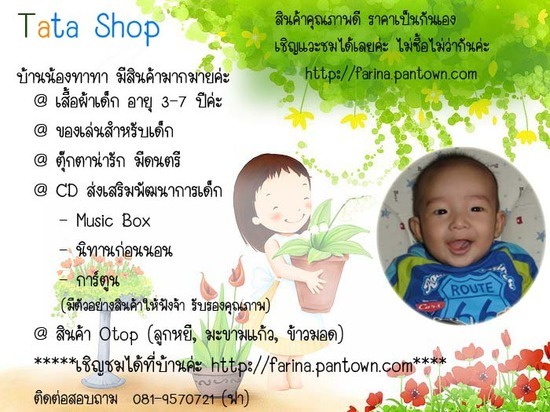 [size=5][color=orange]หากเป็นการรบกวนต้องออภัย ณ โอกาสนี้ด้วยนะค่ะ เชิญชมในบ้านค่ะ ร้านน้องทาทาช๊อป ค่ะ[/color][/size] [url]http://farina.pantown.com[/url] จำหน่ายเสื้อผ้าเด็ก น่ารักๆ ทั้ง ชายและหญิงค่ะ สวย มากๆ ราคาถูก คุณภาพดี [url]http://www.pantown.com/board.php?id=47630&area=3&name=board5&topic=4&action=view[/url] [url]http://www.pantown.com/board.php?id=47630&area=3&name=board5&topic=5&action=view[/url] [url]http://www.pantown.com/board.php?id=47630&area=3&name=board5&topic=6&action=view[/url] เสื้อแขนยาวELMO Spiderman หมีพู [url]http://www.pantown.com/board.php?id=47630&area=3&name=board5&topic=1&action=view [/url] เสื้อเด็กผู้หญิง DOLA น่ารัก น่ารัก [url]http://www.pantown.com/board.php?id=47630&area=3&name=board5&topic=2&action=view[/url] ----------------------------------------------------- จำหน่าย CD/DVD Music Box , นิทานอิสป ไว้เปิดฟังก่อนนอน หรือ จะเป็น ฉบับ การ์ตูนก็มีให้เลือกค่ะ วันนี้จะลง สารคดี ด้วยจ๊ะ [url]http://www.pantown.com/group.php?display=board&id=47630&name=board9&area=3[/url]