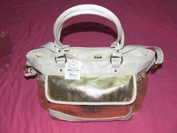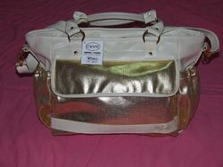 กระเป๋าถือ/สะพายของ Enfant ทำจากหนัง PU สีครีม/ทอง ใช้สะพายหรือถือไปทำงานหรือใส่ของใช้สำหรับเด็กๆ ได้เพราะมีขนาดค่อนข้างใหญ่ (สายสะพายสามารถถอดเก็บได้) กระเป๋าเปิด/ปิดด้วยซิป ด้านหน้ามีช่องซิปไว้ใส่ของได้ และมีช่องสำหรับใส่ของด้านข้างทั้ง 2 ข้าง