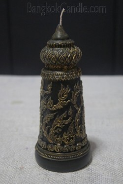 เทียนแกะสลักลายกนก ปัดทอง ให้ความรู้สึกถึงความเป็นไทย มีกลิ่นหอมแนวอโรมา