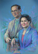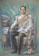 Jarusak Vimukmont, was graduated with a Certificate of Vocational Education, Certificate of Higher Vocational Education, and Bachelor Degree from the Rajamangala institute of Technology, Poh Chang Campus, which is the ancient Institute of Arts cultivated famous artists in various fields of arts in Thailand. Jarusak loves to paint lifelike portrait and the Royal Portrait for more than 30 years. His paintings are prevalent in a variety of organizations such as educational institutions, financial institutions, and associations. His works include portraits, other printed matters, magazine cover, calendar, stamp, etc.