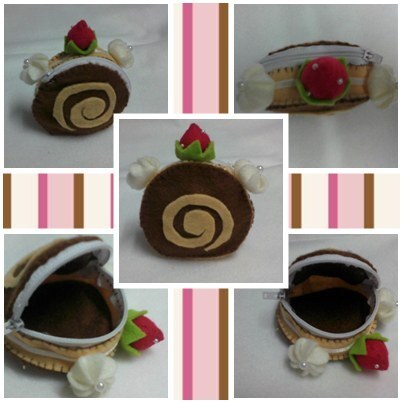 กระเป๋าใส่เหรียญแยมโรล ทำจากผ้าสักหลาด เป็นซิป ทำมือทุกขั้นตอน