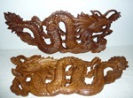 มังกรแกะสลักจากไม้สัก (คู่) สำหรับติดฝาผนัง ขนาด 10*24 นิ้ว ไม้หนา 1 นิ้ว