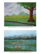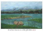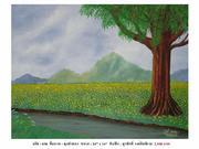 ทุ่งบัวตอง-เรือนแพ ภาพวาดสีน้ำมัน ผลงานของ นายสุรศักดิ์ วงศ์กิตติเวช