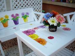 ชุดสนามไม้ เก้าอี้ไม้สีขาว เพ้นท์ลาย โดยช่างศิลป์ผู้ชำนาญงาน รับงานเพ้นท์ตามท่านสั่งได้