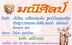 โดยช่างที่ชำนาญงานและปราณีต งานฝีมือทุกชนิด รับทำหัวโขนขนาดจิ๋ว, หัวชฎา, กรองคอ, ข้อมือ, ข้อเท้า, ห้อยหน้า, ทับทรวง ฯลฯ