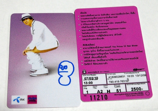 ขายบัตรเดี่ยว 8 จำนวน 2 ใบ รอบ 7 ก.พ.2553 เวลา 13:00 น. ที่นั่งโซน A2 (โซนตรงกลางหน้าเวที) แถว H 51 กับ 52 ขายแพ็คคู่ 5,000.- บาท สนใจติดต่อ ไผ่ 086-977-1904