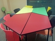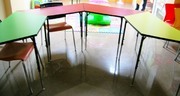 โต๊ะ ขาเหล็ก ปรับระดับได้ ใช้ได้ทั้งผู้ใหญ่และ เด็กอนุบาล สามารถจัดได้หลายรูปแบบ ดังรูปที่โชร์ข้างล่าง จัดเป็นโต๊ะประชุม ก็ได้ จัดเป็นตัวยู หรือ ตัววี เส้นตรง ปรับได้หลายรูปแบบตามต้องการ ขายตัวละ 500