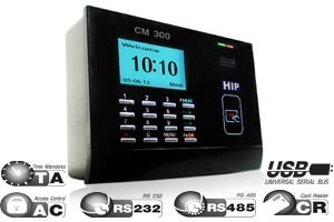 HIP-CM 300 เป็นเครื่องบันทึกเวลาและควบคุมการเปิด-ปิดประตู ด้วยระบบ Card ที่มีประสิทธิภาพสูงสุด คุณสมบัติเด่นของตัว CM 300 นี้ คือสามารถรองรับ Card ได้ 30,000 และ 50,000 ใบ ซึ่งมากที่สุดในท้องตลาดขณะนี้ หน้าจอ Display มีขนาดใหญ่ สามารถแสดงผลได้ถึง 4 บรรทัด รองรับการใช้งานทั้งภาษาไทย และภาษาอังกฤษ เสียงตอบรับสามารถปรับเปลี่ยนได้ตามลักษณะของ Display ที่แสดงบนตัวเครื่อง และสามารถตั้งกริ่งเตือนได้สูงสุดถึง 8 ช่วงเวลา รองรับการทำงานใน รูปแบบ Standalone ซึ่งไม่จำเป็นต้องเชื่อมต่อกับเครื่องคอมพิวเตอร์ตลอดเวลามีหน่วยความจำในตัวเครื่อง ระบบปฎิบัติการใหม่ล่าสุดด้วย Linux Redboot 2.4.20 รองรับการทำงานได้หลากหลายง่ายต่อการพัฒนาระบบในอนาคต เพื่มขีดความสามารถด้วยการรองรับ Flash drive เวอร์ชั่น 1.1 และ 2.0(ทุกยี่ห้อ) เพื่อการดึงข้อมูลจากตัวเครื่องหรือส่งข้อมูลขึ้นไปยังตัวเครื่องซึ่งทำให้สะดวก และง่ายในบางพี้นที่ที่ไม่ต้องการติดตั้ง หรือเดินสายเพื่อใช้ในการรับส่งข้อมูล ดังนั้นเครื่องรุ่น HIP-CM 300 จึงนับได้ว่าเป็นเครื่องที่มีประสิทธิภาพสูงที่สุดในท้องตลาด RFID ในเรื่องของระบบบันทึกเวลาและระบบการเปิด-ปิดประตู