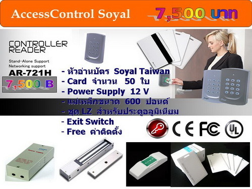เครื่องอ่านบัตร Soyal จากไต้หวัน 1 ชุด พร้อมอุปกรณ์ประตูรับประกัน 1 ปีฟรีค่าติดตั้ง