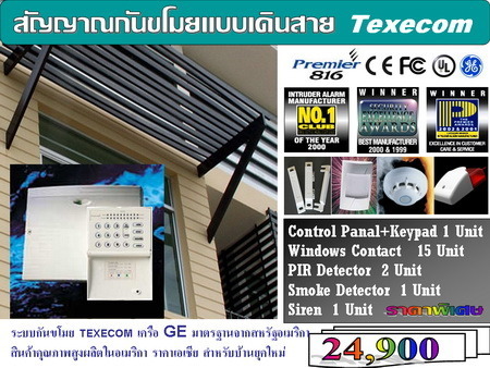ราคาปกติ 28,000 บาท ราคาส่วนลด 3,100 บาท ราคาคงเหลือ 24,900 บาท สินค้าคุณภาพสูง ผลิตในอเมริกา ราคาเอเชีย สำหรับบ้านยุคใหม่ กันขโมย Texecom แบบเดินสาย ประกอบด้วย - Control Panel + Keypad 1 Unit - Windows Contact 8 Unit - PIR Detector 2 Unit - Siren 1 Unit * สินค้ารับประกันคุณภาพ 1 ปีเต็มจากศูนย์บริการ
