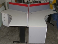 โต๊ะทำงานพร้อมพาร์ติชั่น3ที่นั่ง Brand Logiga ขนาดโต๊ะแต่ละตัวมุมป้าน 1.20+1.20 เมตร ขนาดรวม 2.20เมตรX2.20 เมตร พร้อมพาร์ติชั่น แข็งแรงไม้คุณภาพสูง ขาเหล็ก มีลิ้นชัก สภาพดีมาก