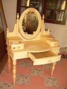 โต๊ะเครื่องแป้งสภาพใหม่ ใช้ไม้สนนอกประกอบ ขากลึงรูปแจกัน กระจก รูปไข่ปรับได้ แข็งแรงทนทาน สวยงาม ขนาด 45 X 99 X 75 ซม. - รับงานตามสั่ง เช่น โต๊ะ ตู้ เตียง เก้าอี้ ไซต์บอร์ด ตู้โชว์ * * ติดต่อสอบถาม โทร 089-9679686 * *