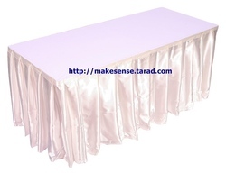 โต๊ะหน้าขาวปูผ้าขาว-สเกิร์ตระบายผ้าล้อมรอบ สีขาว ดำ แดง