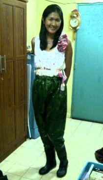ชุดและรองเท้าบูทต่อเป็นชิ้นเดียวกัน ทำจาก PVC อย่างหนา