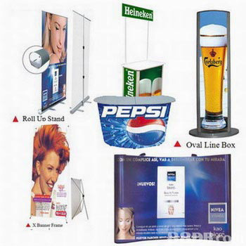 ป้ายออกบูธราคาถูก rollup, backdrop, xbanner, jflag, โต๊ะชิม, ชั้นวางโบร์ชัวร์, กล่องไฟสำเร็จรูป