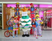 ตัวตลกโบโซ่บิดแจกลูกโป่ง มายากล ตัวการ์ตูนมาสคอท ตัวตลกขายาว