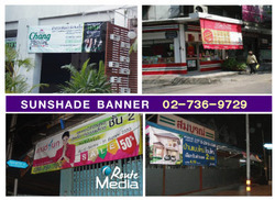 รับผลิตและติดตั้งป้ายแบนเนอร์ โฆษณาสินค้า และติดตั้งตามร้านค้า ทั้งในกรุงเทพและทั่วประเทศ ป้ายโฆษณาบังแดด สื่อโฆษณาที่เข้าถึงกลุ่มเป้าหมายอย่างแท้จริง