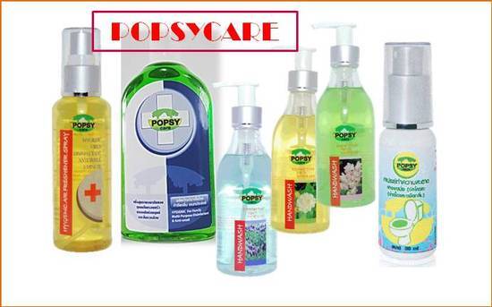 ป๊อปซี่แคร์- ดี มีคุณสมบัติที่มีฤทธิ์เป็นกลางไม่เป็นกรดหรือด่าง ทำให้เป็นอันตรายต่อผิวมือ และยังช่วยขจัดคราบไขมันกลิ่นเหม็นต่างๆที่ติดมือให้หมดไป มีส่วนผสมของสาร KD ทำให้ผิวมือนุ่มละมุนไม่แห้งกร้าน