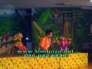 โชว์ละครลิงประกอบด้วย นักแสดง 2-3 คน และ ลิง 4-5 ตัว