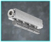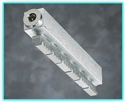 Air Knives 396 : air knife with six 920 A flat nozzles and a specially designed aluminum manifold. Air knives ave been installed in a wide range of industrial applications. Cooling rollers, drying tobacco, dispersion of powdered paint, blow - off of emulsions, etc. are but a few. Creates an air cone spread of 370 mm (14.57") at a distance of 150 mm (6"). Blowing force = 33.0 N (116.5 oz.). Full complies with OSHA safety regulations and EU Machine Directive noise limitations. Patented Air knife 394 Nozzles Model : 394