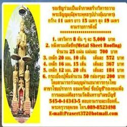 เลขที่บัญชี 545-0-14343-5 ขอเชิญร่วมเป็นเจ้าภาพสร้างวิหารถวายพระธัญญมุนี(พระพุทธรูปปางอุ้มบาตร) กว้าง 11 เมตร ยาว 15 เมตร สูง 19 เมตร