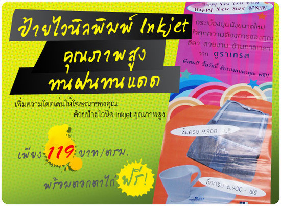 พิมพ์Inkjet ราคา ตรม.ละ 99 บาท พิมพ์ไวนิลเนื้อหนา รับประกัน ความคงทนของสี