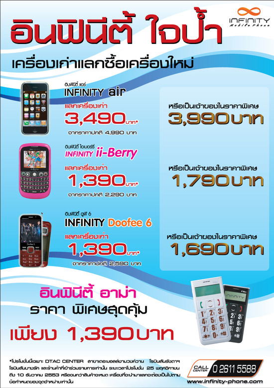 ตอนนี้ อินฟินิตี้ เค้ามีโปรโมชั่นใหม่ สามารถนำเครื่องเก่า ไปแลกเครื่องใหม่ ได้ในราคาที่ถูกลงกว่าเดิม ด้วยนะค่ะ สนใจมั้ยค่ะ ลองเข้าไปเลือกดู เลือกชมได้ที่ ร้านดีแทค สาขาเดอะมอลล์งามวงศ์วาน โรบินสันรัชดา โรบินสันบางรัก นะค่ะ สินค้ามีจำนวนจำกัดนะค่ะ