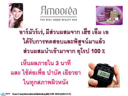 โคลนมหัศจรรย์ อามัวร์เร่ (amoorea) เห็นผลใน 3 นาที หน้าตาดีขึ้นเพียง7 วัน (นำเข้าจากมาเลเซีย) สัมผัสแรกเพียงแค่ 3นาทีเท่านั้น ! ความมหัศจรรย์จะเกิดขึ้นกับผิวของคุณ เพื่อนจะพากันถามคุณว่า ทำไมๆๆๆ ผิวคุณถึงได้สวย ดูดี สดใส เปล่งปลั่ง เนียนนุ่ม สะลุน ละไมดูแข็งแรงเด้งขึ้นยกกระชับขึ้นรูขุมขนบนใบหน้าเล็กลง รอยตีกา+กระ บนใบหน้าคุณลดลง ถุงใต้ตาลดหายไป เส้นผมนุ่มสลวยและหนาขึ้น (สระผมได้)ประหยัดเงิน ประหยัดเวลา ( 1ก้อนใช้นานประมาณ 3เดือน)